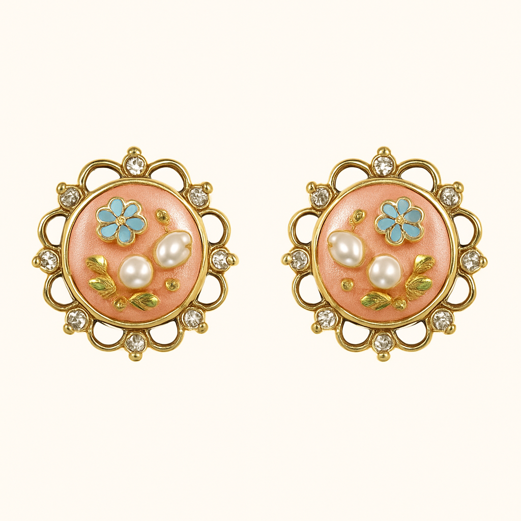 Floral Charm Pearl Studs