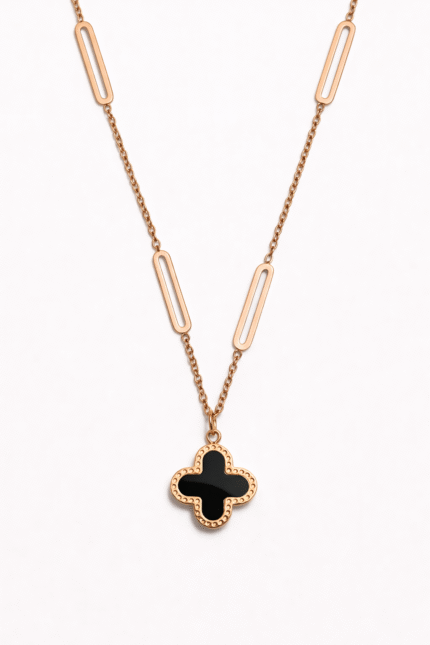 Make a bold yet elegant statement with this striking Gold & Black Swirl Floral Pendant Necklace. Featuring an artistic flower-inspired swirl design, the pendant is accented with rich black enamel and framed in a polished gold finish, creating a dramatic contrast that feels modern and sophisticated.