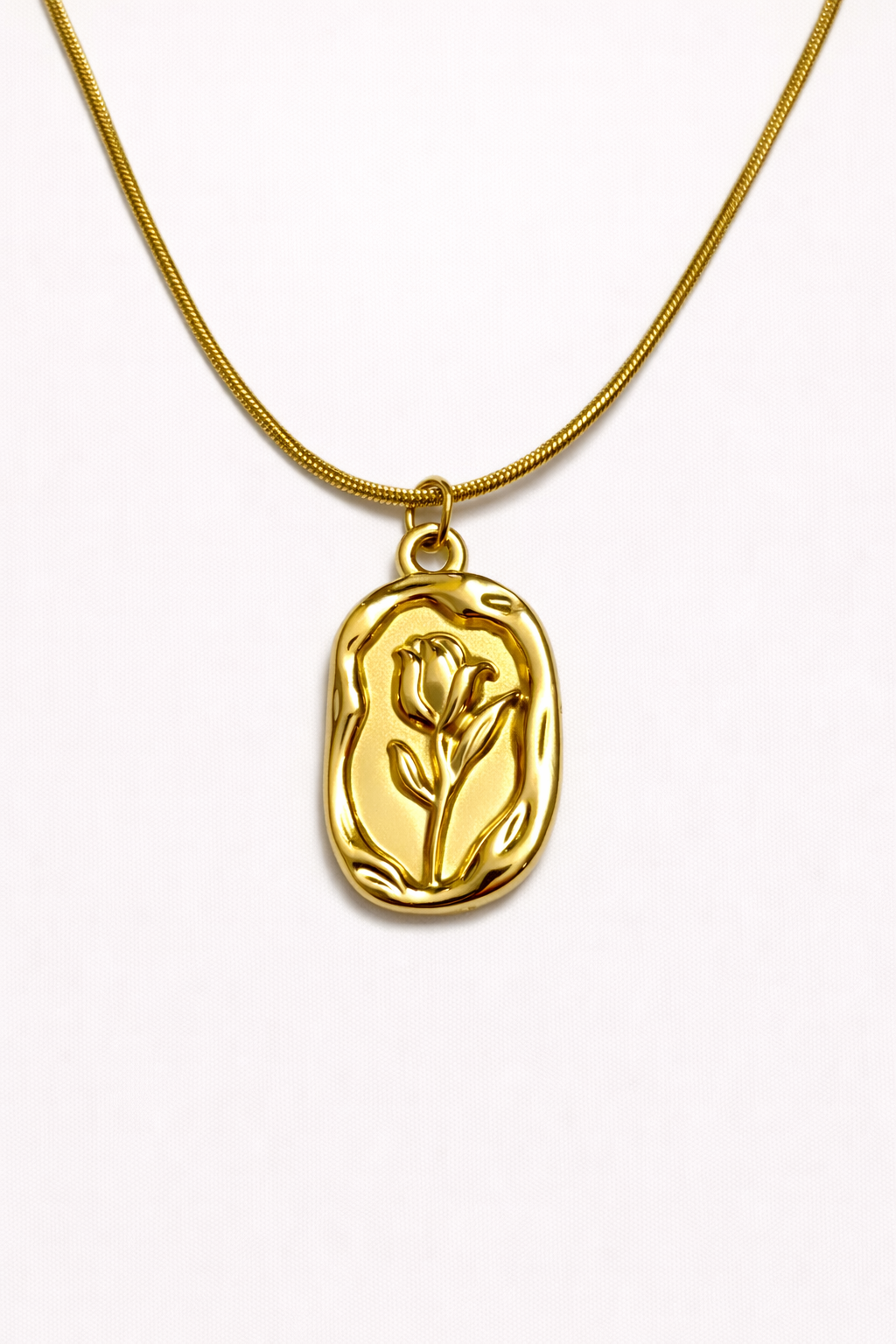 A timeless gold pendant featuring an elegant floral motif, crafted for effortless everyday luxury and graceful charm.